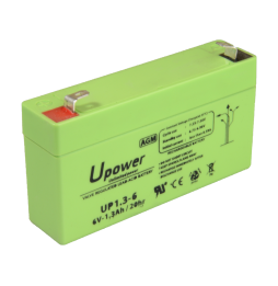 4,76 €Upower. Batteria ricaricabile. Tecnologia piombo-acido AGM. Voltaggio 6 V. Capacità 1.3 Ah. 97 x 57.5x x 24/ 290g. Per backup o uso diretto