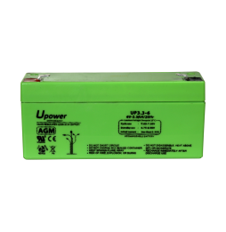 8,54 €Upower. Batteria ricaricabile. Tecnologia piombo-acido AGM. Voltaggio 6 V. Capacità 3.2 Ah. 66 x 134x x 34/ 670g. Per backup o uso diretto