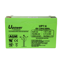 9,76 €Upower. Batteria ricaricabile. Tecnologia piombo-acido AGM. Voltaggio 6 V. Capacità 7.0 Ah. 100 x 151x x 34/ 1150g. Per backup o uso diretto