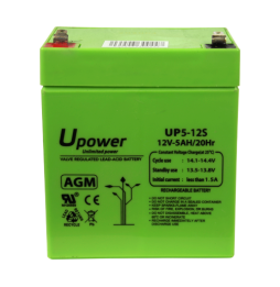 13,42 €Upower. Batteria ricaricabile. Tecnologia piombo-acido AGM. Voltaggio 12 V. Capacità 5.0 Ah. 107 x 90 x 70 mm / 1650 g. Per backup o uso diretto
