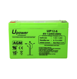 15,86 €Upower. Batteria ricaricabile. Tecnologia piombo-acido AGM. Voltaggio 6 V. Capacità 12.0 Ah. 100 x 151x x 51/ 1800g. Per backup o uso diretto