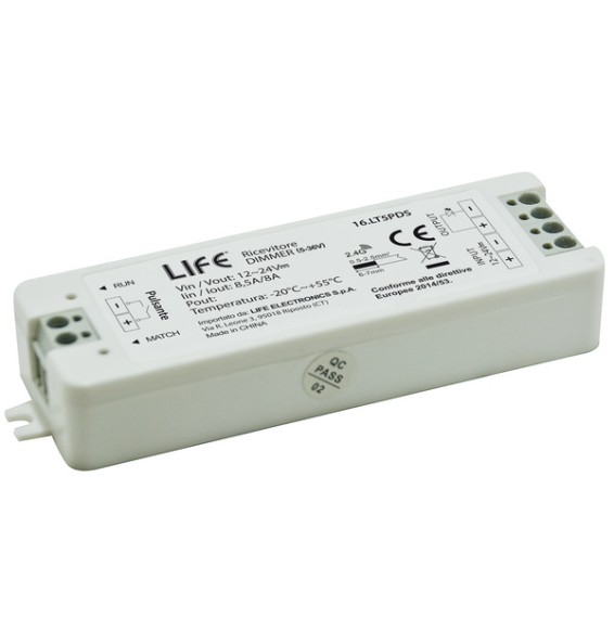 Life Ricevitore RF Dimmer a Zone Strisce LED Associabile a Telecomando e Connessione Pulsante Cablato - mod. 16.LT5PDS