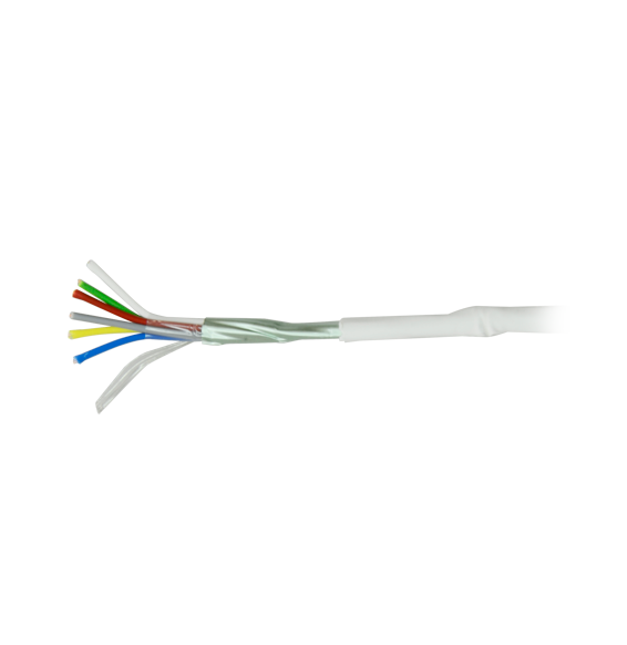 6 conduttori. Conduttore Rame elettrolitico flessibile. Schermo Alluminio poliestere+drenaggio CuSn. Bobina da 100 metri. Certificato CPR Cca -1sb, a1, d2. Poche perdite