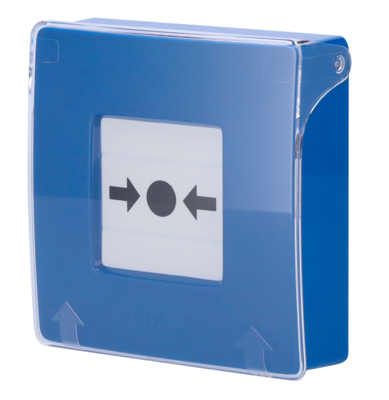 Pulsante manuale di allarme antincendio blu. Senza fili 868 MHz Jeweller. Pulsante di allarme antincendio o attivatore di scenari. Compatibile con la funzione di allarme interconnesso. Trasmissione degli allarmi alla Centrale Operativa (configurabile). Alimentazione 2 batterie CR123A