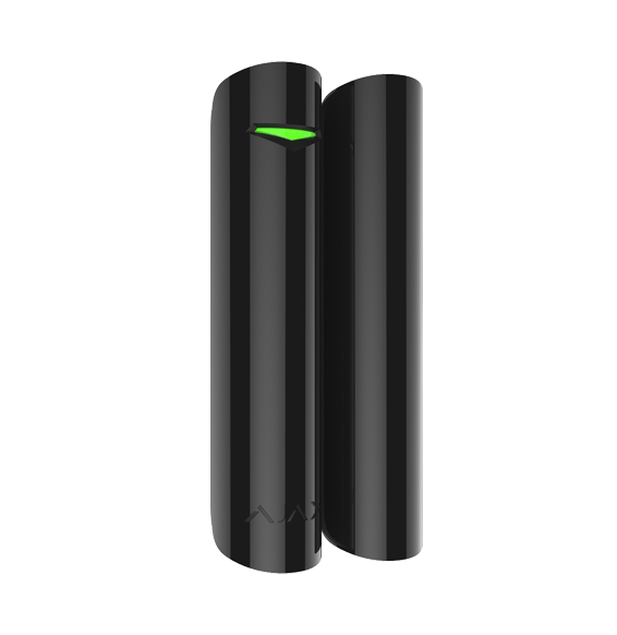 Contatto magnetico porta/finestra. Rilevatore di vibrazione e inclinazione. Senza fili 868 MHz Jeweller. Certificato grado 2. 1 entrata cablata / 1 Tamper. Alimentazione 1 batteria CR123A 3.0 V. Colore nero