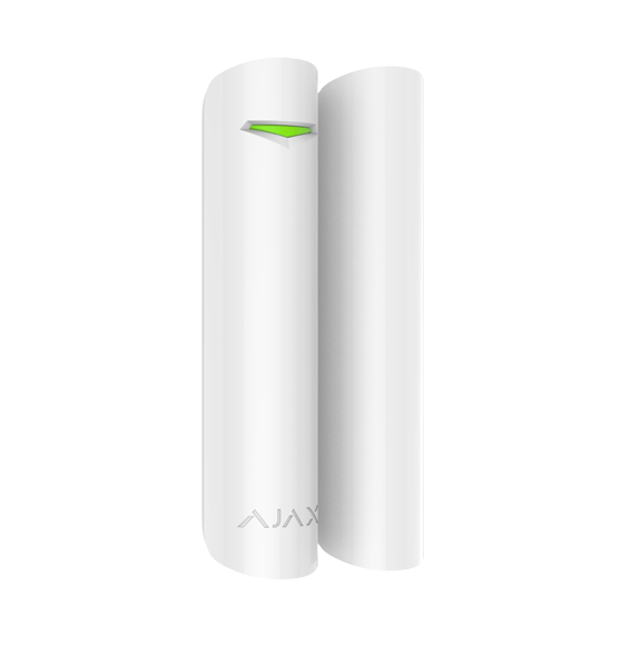 Contatto magnetico porta/finestra. Rilevatore di vibrazione e inclinazione. Senza fili 868 MHz Jeweller. Certificato grado 2. 1 entrata cablata / 1 Tamper. Alimentazione 1 batteria CR123A 3.0 V. Colore bianco