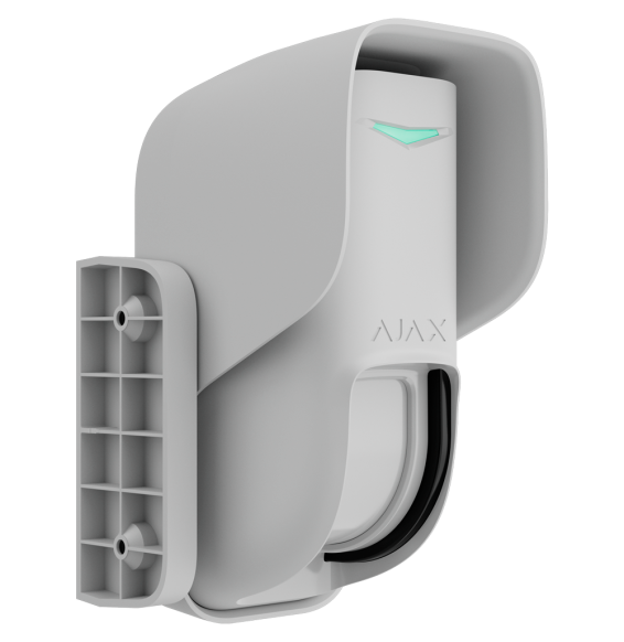 Rilevatore a tenda da esterno. Doppio PIR a tenda e microonde (24 GHz). Senza fili 868 MHz Jeweller. Certificato grado 2. Portata rilevamento 8~12 m / Antimasking. Distanza in spazio aperto 1700 m. Colore Bianco.