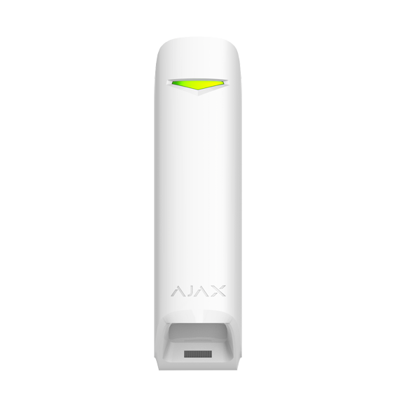 Rilevatore PIR tipo tenda. Senza fili 868 MHz Jeweller. Certificato grado 2. Portata di rilevamento configurabile da 6 a 15 m. Distanza in spazio aperto 1700 m. Uso interno. Colore bianco