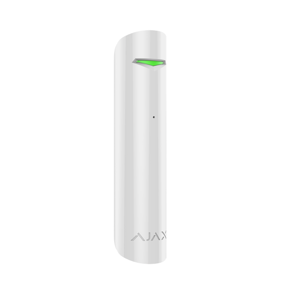 Rilevatore rottura cristalli. Senza fili 868 MHz Jeweller. Certificato grado 2. Indicatore LED e antenna interna. Rango di rilevamento 9 m. 1 entrata con cavi / 1 tamper. Colore bianco