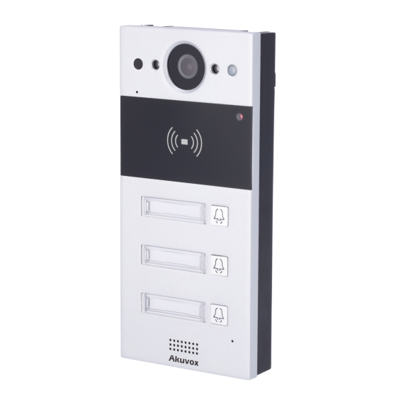 Videocitofono IP da superficie. Telecamera 2 Mp | Audio bidirezionale Crystal Clear. Apertura tramite scheda EM/MF e NFC | 2 relè. 3 appartamenti | PoE, SIP standard. Manutenzione Cloud. Connessione via Cloud | Uscita 12V