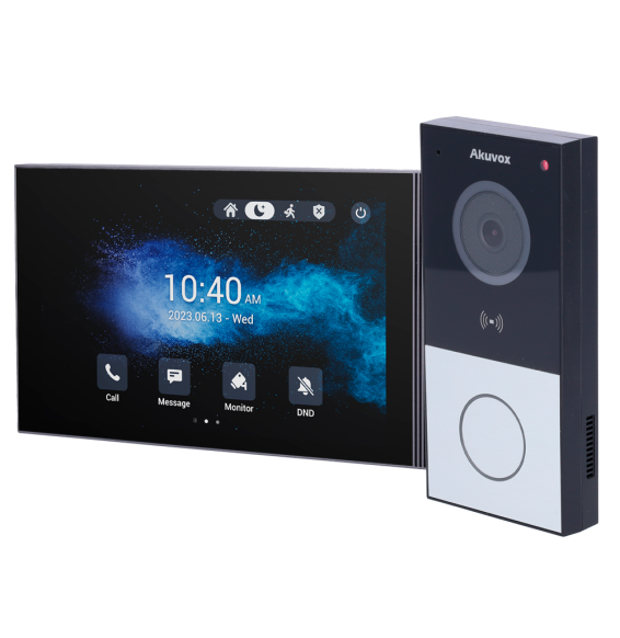 Kit videocitofonico su base LINUX. IP & WiFi | Postazione esterna e monitor. Audio bidirezionale Crystal Clear. Lettore MF, NFC e BLE | PoE standard. 1 uscita relè | Manutenzione Cloud. Collegamento monitor e postazione esterna tramite Cloud