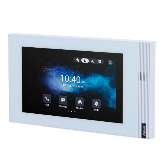 Monitor Linux per videocitofono. Schermo TFT di 7". Audio bidirezionale Crystal Clear | Easy UI. TCP/IP, PoE, SIP standard. Manutenzione tramite Cloud. Collegamento monitor e postazione esterna tramite Cloud