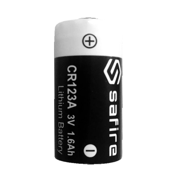 Safire. Batteria CR123A. Voltaggio 3.0 V. Litio. Capacità nominale 1600 mAh. Compatibile con i prodotti a catalogo
