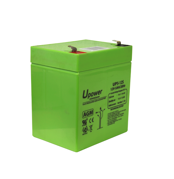 Upower. Batteria ricaricabile. Tecnologia piombo-acido AGM. Voltaggio 12 V. Capacità 5.0 Ah. 107 x 90 x 70 mm / 1650 g. Per backup o uso diretto
