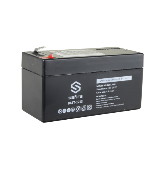 Batteria ricaricabile. Tecnologia piombo-acido AGM. Voltaggio 12 V. Capacità 1.3 Ah. 58 x 97 x 65 mm / 540 g. Per backup o uso diretto