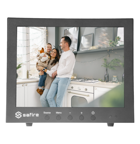 Monitor SAFIRE LED 10" - Progettato per la videosorveglianza - Formato 4:3 - VGA, HDMI, BNC loop e audio - Risoluzione 1024x768 - altoparlanti integrati