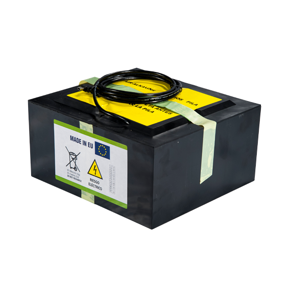 Batteria zinc-aire. Voltaggio 6.0 V. Capacità 6000 Wh. 162 x 396 x 190 mm / 12.55 kg. Per backup o uso diretto