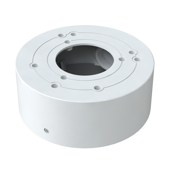 Scatola di giunzione Safire Smart. Per telecamere dome. Adatto per uso in esterni. Installazione a tetto o parete. Diametro della base 96 mm. Passacavo
