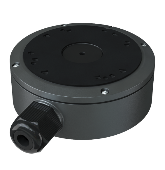 Scatola di giunzione Safire Smart. Per telecamere dome. Adatto per uso in esterni. Installazione a tetto o parete. Diametro della base 139.3 mm. Passacavo