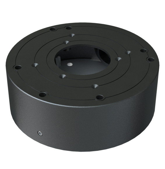 Scatola di giunzione Safire Smart. Per telecamere dome. Adatto per uso in esterni. Installazione a tetto o parete. Diametro della base 109.5 mm. Passacavo