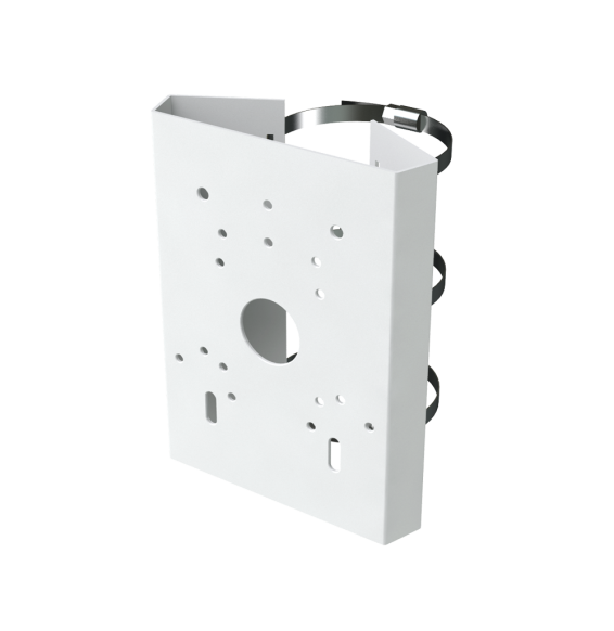 Staffa per pali/lampioni Safire Smart. Per telecamere dome motorizzate. Diametro 118~140 mm. Produzione in acciaio laminato SPCC. Colore bianco. Passacavo