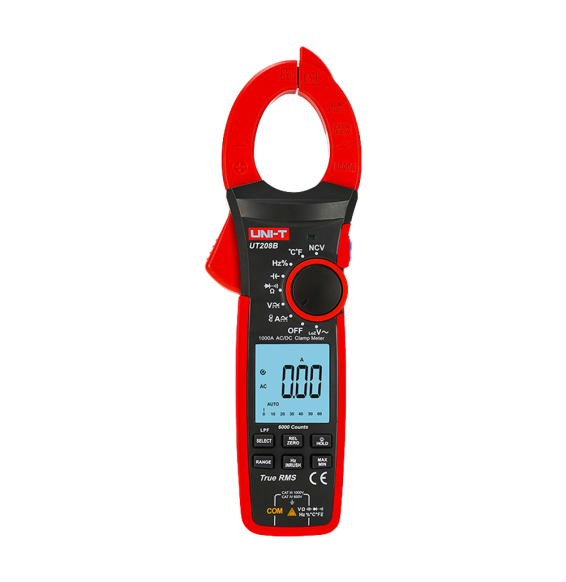Pinza amperometrica LCD. Misura in DC fino a 1000V e 1000A. Misura CA fino a 1000V e 1000A. Resistenza/capacitanza/frequenza/temperatura. Intervallo automatico | Test di diodi | True RMS | NVC. Apertura pinza di 42mm