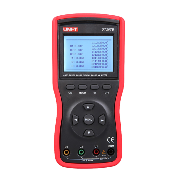 Pinza amperometrica trifase. Display con retroilluminazione a LED. Misura CA fino a 600V e 20A. Misura della potenza attiva, reattiva e apparente. Misura del fattore di potenza e dell'angolo di fase. Memoria per l'archiviazione dati