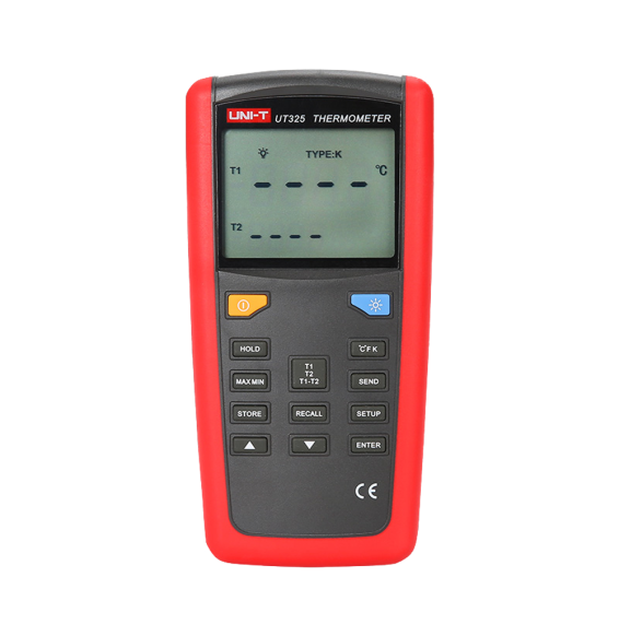 Termometro con sonde di tipo K, J, T, E, R, S e N. Tipo di visualizzazione Doppia. Valori in ºC, K e ºF | Archiviazione dati. Alta precisione | Allarmi di valore massimo e minino. Spegnimento automatico