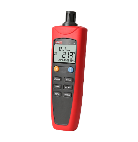 Misuratore di condizioni ambientali. Misurazione della temperatura e dell'umidità. Design leggero ed economico con interfaccia intuitiva. Spegnimento automatico. Tº di umidità e sensazione termica. Collegamento USB al software del PC