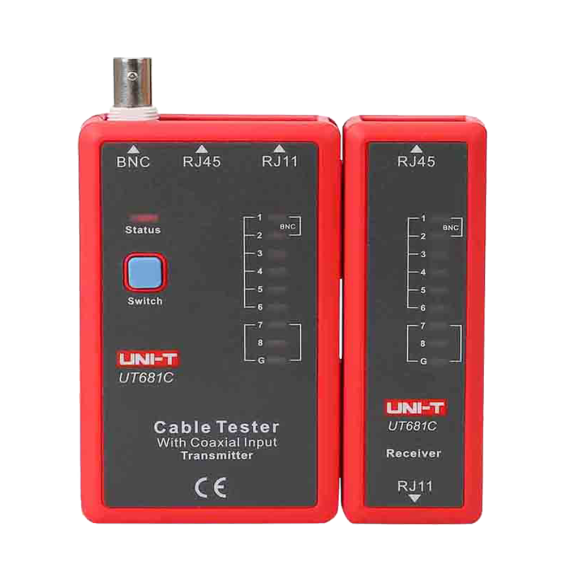 Tester di cavi. Controllo dello stato dei cavi RJ45/RJ11/BNC. Test modalità veloce e modalità lenta. Spegnimento automatico