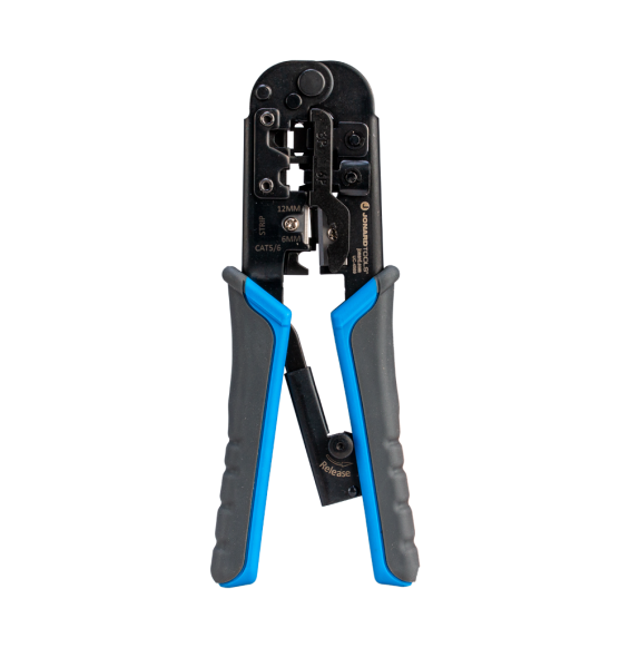 Pinza crimpadora per connettore. Connettori compatibili: EZ-RJ45, RJ11, RJ12. Cavi compatibili: CAT3, CAT5/5E e CAT6. Modello professionale di alta qualità. Lunga durata e design ergonomico. Veloce e facile da usare