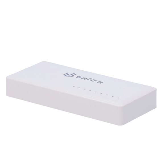 Safire. Switch da tavolo. 8 porte Gigabit. Velocità 10/100/1000 Mbps. Plug & Play. Tecnologia di risparmio energetico