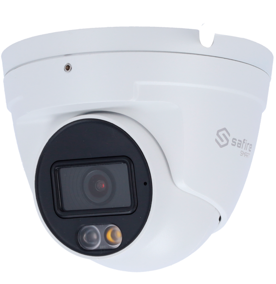 Safire Smart. Telecamera Turret IP gamma E1 Intelligenza Artificiale. Risoluzione 4 Megapixel (2566x1440). Ottica 2.8 mm | Microfono integrato | DL 30m. IA: Classificazione di persone e veicoli. Waterproof IP67 | PoE (IEEE802.3af) | P2P