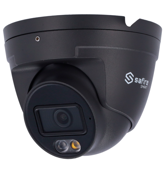 Safire Smart Telecamera Turret IP gamma E1 IA. Colore Grigio. Risoluzione 4 Megapixel (2566x1440). Ottica 2.8 mm | Microfono integrato | DL 30m. IA: Classificazione di persone e veicoli. Waterproof IP67 | PoE (IEEE802.3af) | P2P