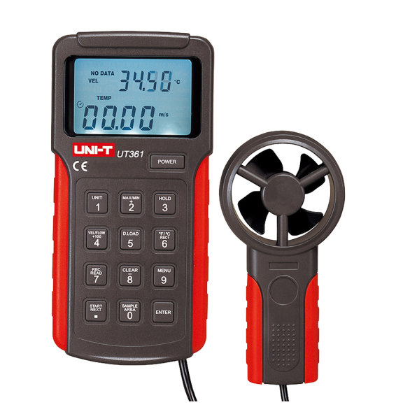 Anemometro di tipo split. Sensore di velocità del vento ad alta precisione. Sensore di temperatura. Spegnimento automatico | Memoria. Valori Massimi e Minimi. Display LCD retroilluminato