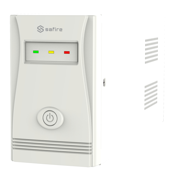 UPS monofase line-interactive. Potenza 600VA/360W. Entrata 220~230 Vac /Uscita 220~230 Vac. Tempo di ricarica 6~8 ore. Intervallo di frequenza in ingresso 50/60 Hz. Batteria 12V/7Ah